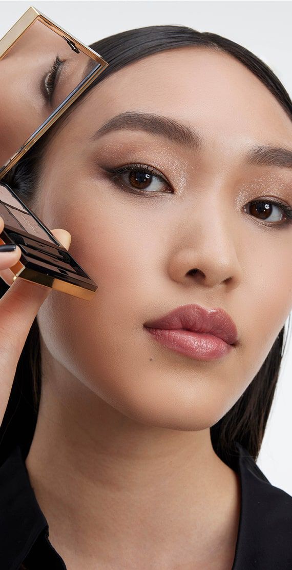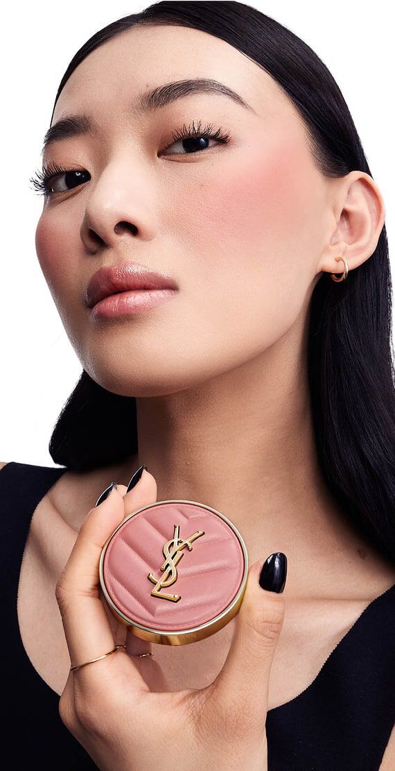 À l'aide d'un pinceau à blush (Pinceau visage YSL N°5), appliquez Make Me Blush sur le haut des pommettes en réalisant des mouvements circulaires pour un voile de couleur audacieux.Jouez avec le positionnement du blush pour sculpter votre visage.